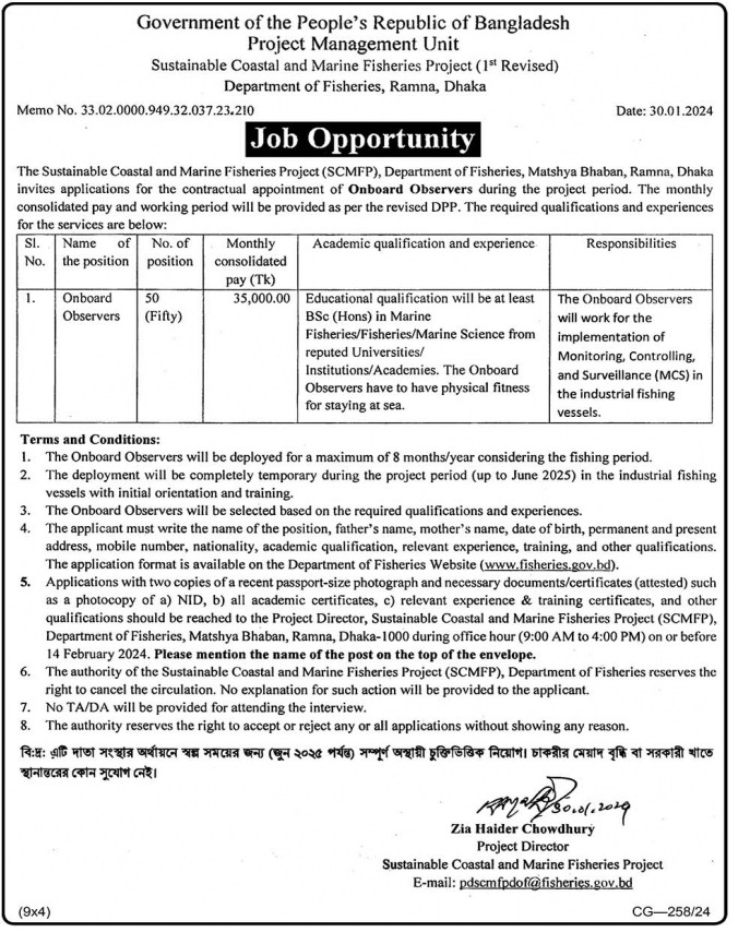 All eligible unemployed citizens of Bangladesh can apply for the Department of Fisheries Job Circular. If you are an eligible candidate to apply for this Job notification then without delay apply as soon as possible as per the instructions given by the authorities within the specified time.