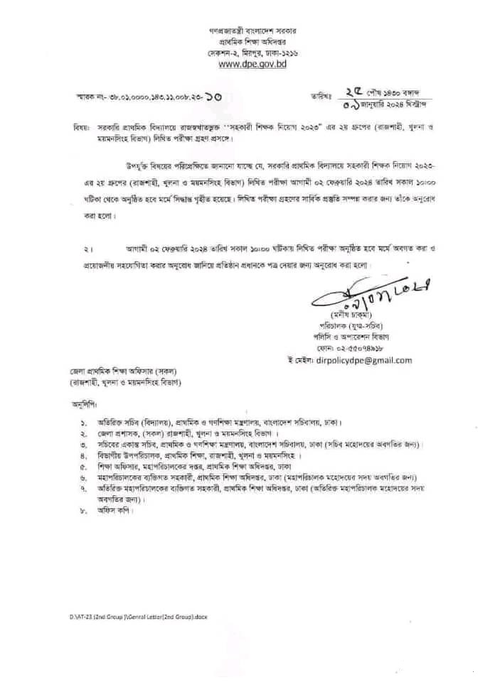 ৩। ২০ শতাংশ পুরুষ কোটা। - 2nd Phase MCQ Exam Date: 02 February 2024